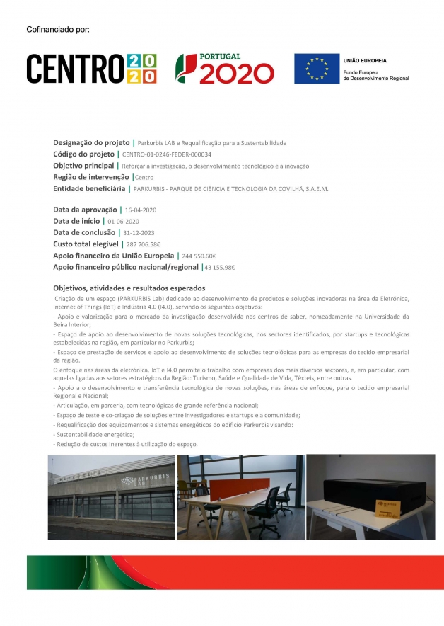 - Espaço de apoio ao desenvolvimento de novas soluções tecnológicas, nos sectores identificados, por startups e tecnológicas estabelecidas na região, em particular no Parkurbis;